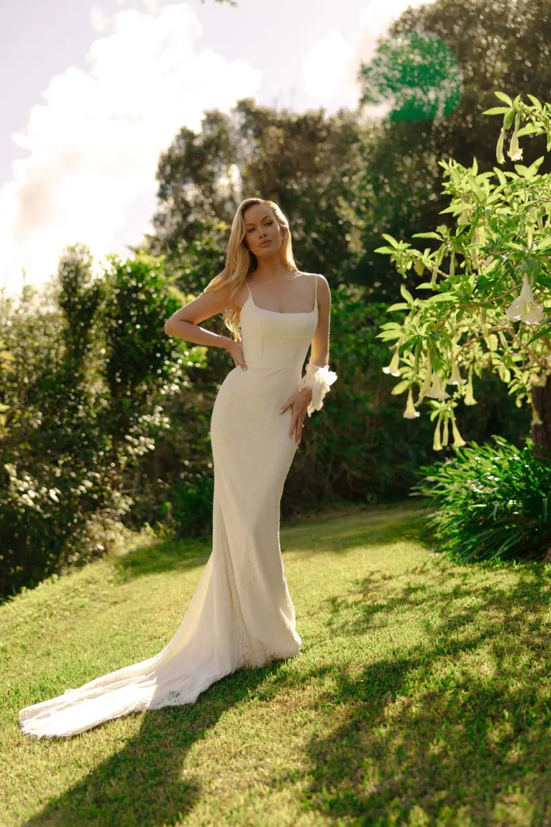 Form fitting and super sexy, Loretta is our latest simple lace wedding dress that offers a shape that even Marilyn Monroe would envy!