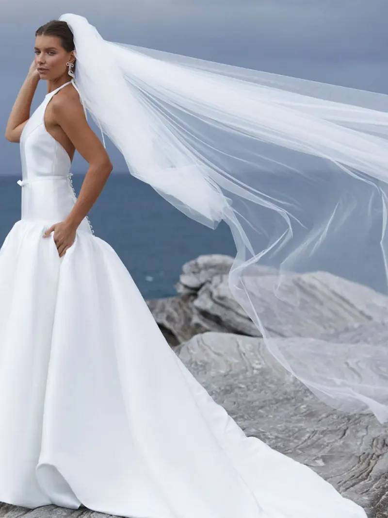 Nothing makes an entrance like a dramatic wedding veil, now it is your time to live your ‘Parent Trap’ Wedding dress dreams! Our Tom, Tommy & Thomas veil creates the ultimate veil statement. With 3 tiers of fully gathered silk white tulle!