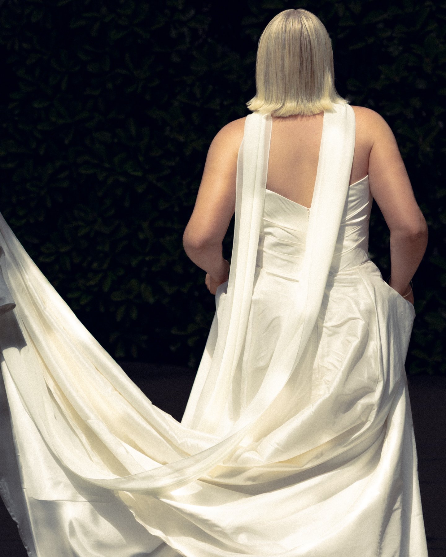 The strapless look highlighted her décolletage, while the softly scooped neckline flattered and framed her effortlessly. Crafted in our luxurious Faux Silk fabric with a subtle textured finish, Emma is breathable, floaty, and luminous in just the right way, catching the golden hour light without overpowering it. For brides seeking an organic, natural aesthetic while remaining undeniably chic, this fabric is the sweet spot. And for those dreaming of pure silk? Emma is also available in 100% Silk Shantung or structured Mikado for a slightly more architectural finish. A gown you’ll remember long after the final dance and one your guests won’t stop talking about.