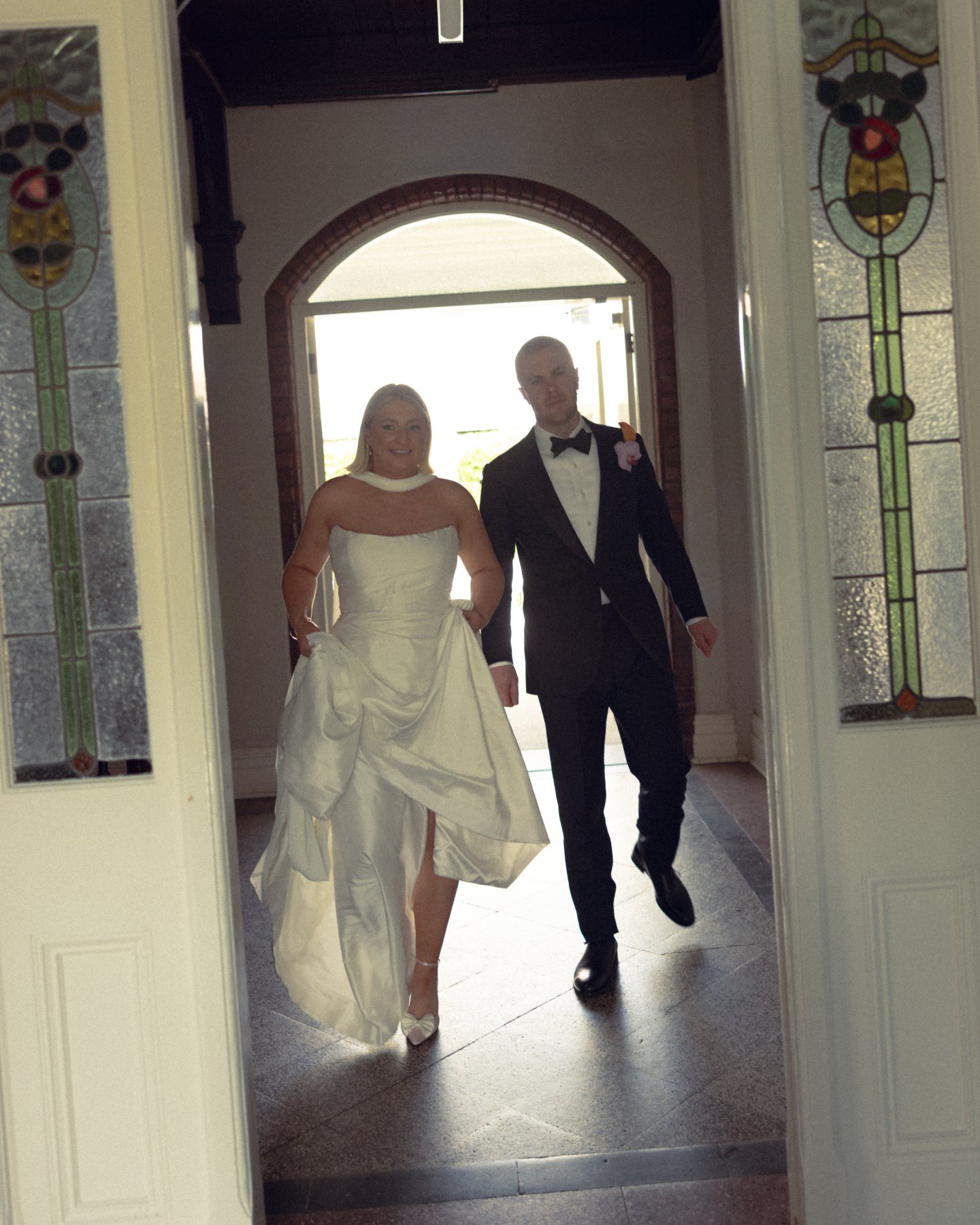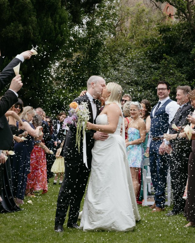 If Greta Gerwig decided to direct a wedding, it would look exactly like Chloe and Leo’s day. Set within a heritage convent wrapped in lush greenery and dappled sunlight, their celebration felt like stepping into a light academia Pinterest board but cooler, bolder, and entirely their own. Ivy climbed the stone walls, long tables filled with loved ones, and wildflowers in joyful pops of colour softened the old-world architecture. It was romantic without trying too hard. Thoughtful, but never fussy. And at the centre of it all? Chloe, the effortlessly cool bride who made timeless feel modern again.