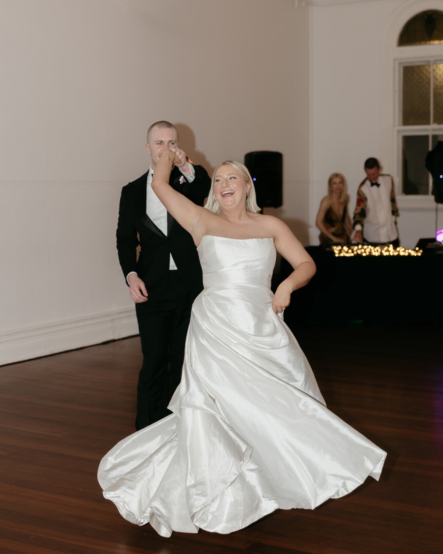 As the sun dipped behind the convent walls and fairy lights flickered on, Chloe made the ultimate bride move by swapping her heels for pastel pink ballet flats. Suddenly, she wasn’t just a bride: she was a ballerina spinning across the dance floor, silk skirt swishing, Leo twirling her under the stars. It was playful. It was poetic. It was so very them.