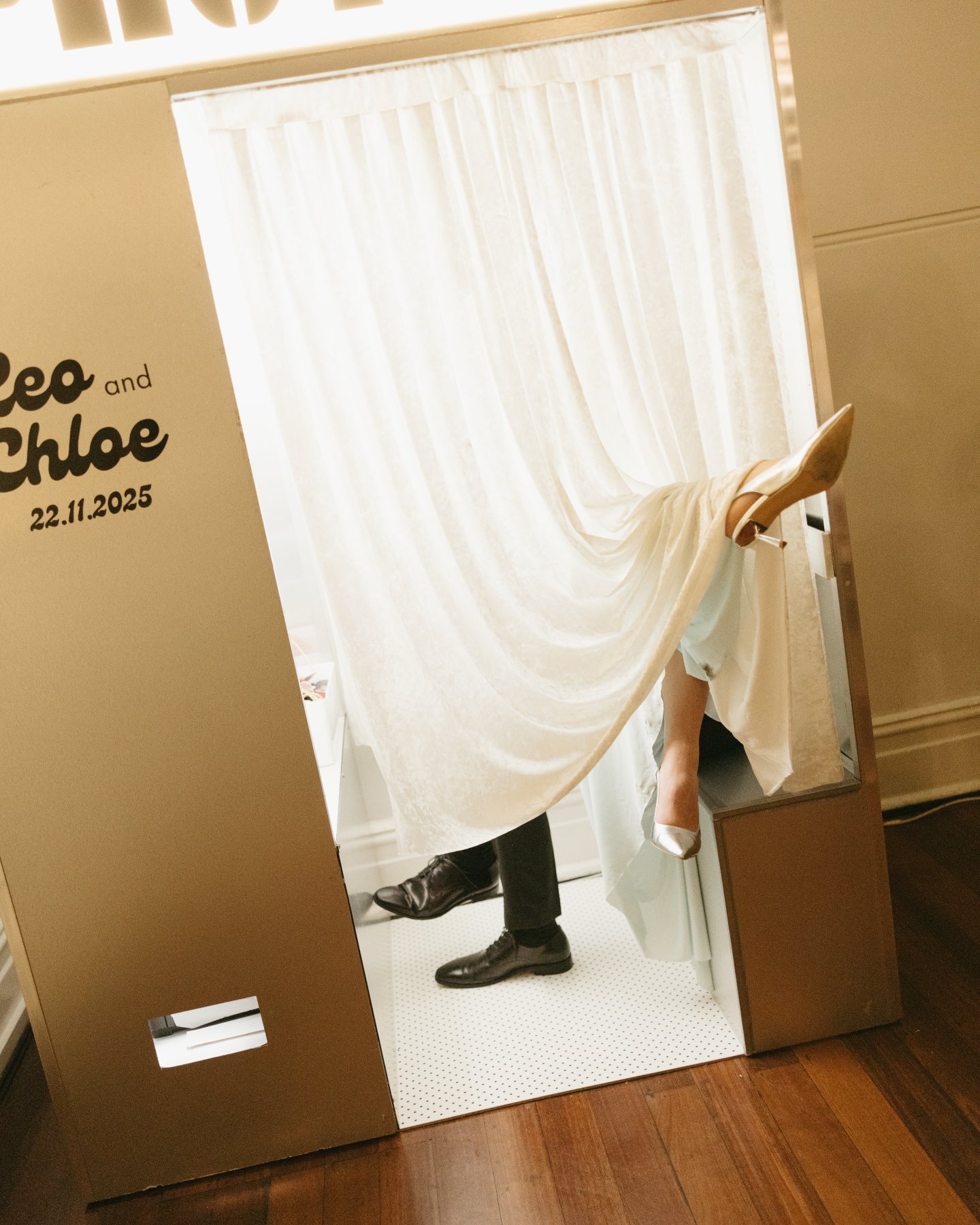 Guests of every generation queued for the cheeky photobooth, emerging a glossy paper memory in hand and the kind of laughter you can hear in a still image. The whole day felt like a love letter to nostalgia, handwritten vows, champagne coupes clinking under ancient archways, and some moments to breathe and recenter. It was giving Dead Poets Society but make it bridal editorial.