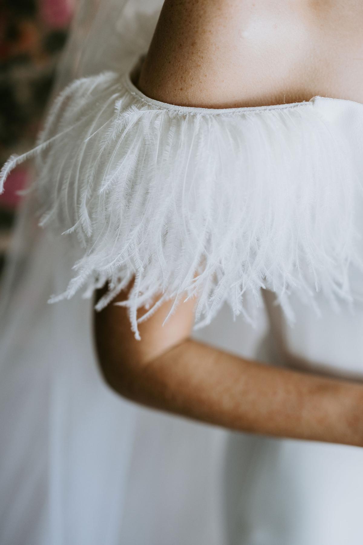 The most elegant of brides, Genevieve, wore the Raven gown from our BESPOKE collection. She had a custom ostrich feather sleeve detail added to this minimal gown. The bride, who owns the digital agency Day Management wed Pat at Rippon Lea Estate.