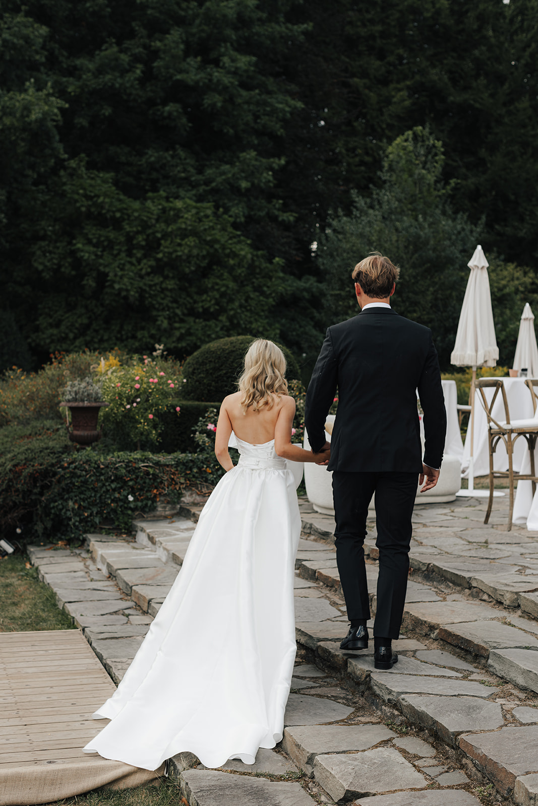 Our bespoke collection is designed to be fully mix-and-match, using our own curated selection of bodices and skirts. This allows each bride to play with different combinations and explore what feels most true to her style. Michelle did just that and trusted us to bring her vision to life. Let’s all agree: this gown was the perfect choice for such a heritage-rich European castle.