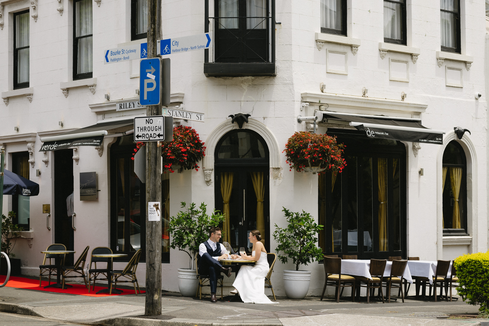 The day began with an intimate civil ceremony set inside a stunning heritage building all high ceilings, soft light, and quiet anticipation. It was classy, understated, and deeply personal, the kind of setting where every glance and every word feel more meaningful. From there, the celebration moved to a cosy Italian restaurant tucked away in Darlinghurst, where the atmosphere shifted into something warm, relaxed, and quietly electric. Long tables, shared plates, good wine, and even better company: it was simple, soft, a little edgy, and entirely tasteful. The whole day carried that “you had to be there” kind of magic.