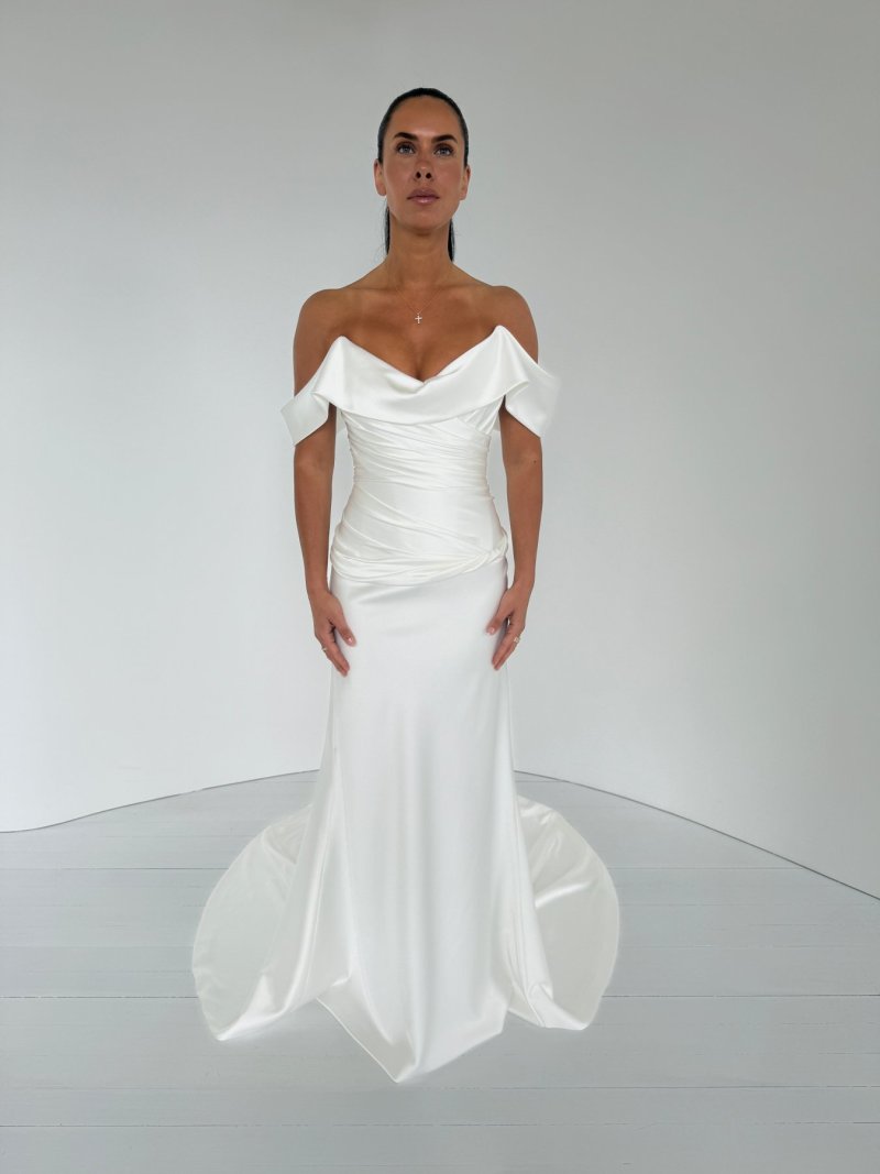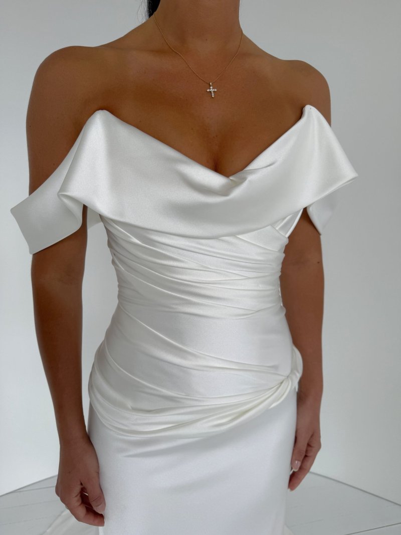 A fit and flare wedding dress is the ideal choice for brides who want to showcase their figure while still enjoying the elegance of a flowing skirt. Fitted through the bodice and hips, this style gently flares out below the hips, creating a stunning hourglass silhouette that highlights your curves in all the right places. Whether you’re looking for a sleek satin finish or romantic lace details, a fit and flare wedding dress offers the perfect combination of sophistication and glamour.